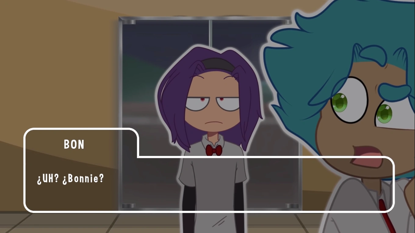 Mientras, Bonnie no fué al colegio y Bon notó su ausencia. Horas después el peliazul se encuentra con el pelimorado algo apagado, le pregunta que si podrían ir juntos a la escuela, pero le ignora.